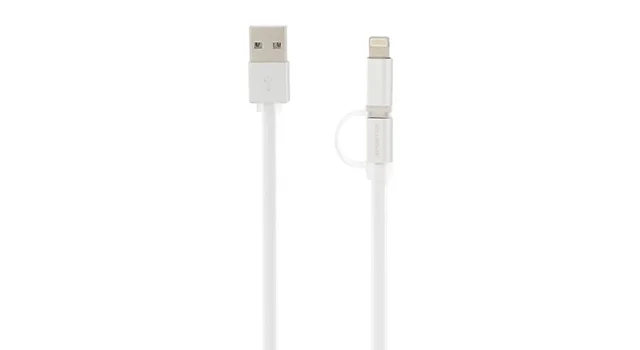 دارای کابل تخت مقاوم در برابر گره خوردن و درهم پیچیدن داراری کانکتور microUSB همراه با تبدیل متصل به بدنه لایتنینگ