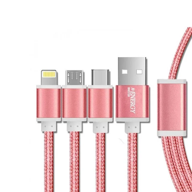 کابل تبدیل USB به microUSB / لایتینگ /USB-C ایکس-انرژی مدل X-303 طول 1 متر