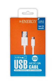 کابل فست شارژ X-101 تولید شرکت ایکس انرژی می باشد و طراحی ظریفی دارد این کابل 100 سانتیمتر طول دارد و با انواع گوشیهای موبایل، تبلت، دوربینهای دیجیتال و دیگر لوازم مجهز به درگاه microUSB سازگار است. در یک سمت از این کابل یک کانکتور microUSB و در سمت دیگر آن یک کانکتور USB به کار رفته است. شما میتوانید کانکتور USB موجود در این کابل را به یک دستگاه مجهز به این درگاه مانند کامپیوتر یا لپتاپ متصل کنید؛ سپس سمت دیگر کابل را به تبلت یا گوشی موبایلتان وصل کرده و اطلاعات را میان آنها انتقال دهید. همچنین این امکان وجود دارد که کانکتور USB کابل را به یک شارژر دیواری متصل کرده و باتری گوشی موبایل یا تبلت خود را شارژ کنید همچنین میتوان از آن بهعنوان کابل یدک مخصوص استفاده برای شارژر فندکی و پاوربانک استفاده کرد. رشتههای مسی داخل این کابل با روکشی از جنس PVC پوشانده شدهاند. این روکش مقاوم است و باعث میشود کابل در برابر گره خوردن یا درهم پیچیدن مقاومت زیادی داشته باشد. سرعت انتقال اطلاعات و شارژ در این محصول به صورت فست شارژ می باشد.