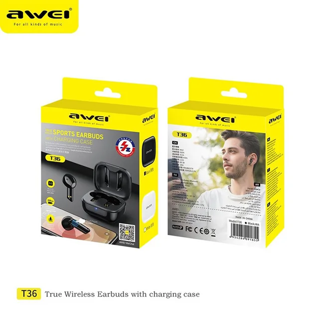 هدفون بی سیم T36 از کمپانی Awei با چیپ بلوتوث 5.0 اتصالی پایدار در اختیار شما می گذارد. IPX4 نیز باعث شده این هدفون ضد آب باشد و حین تعریق و یا بارش به مشکل نخورد . باتری ظرفیت بالای این هدفون با مصرف کمتر باتری به عمر آن میافزاید و هدفونتان را از شارژ طولانی و مداوم بی نیاز میکند . کیس این هدفون با 320mAh تنها 1.5 ساعت نیاز به شارژ کامل دارد و به شما 4_5 ساعت پخش مدوام میدهد. هر دو گوش این هدفون مجهز به چیپ Airoha بوده که به شما امکان استفاده جداگانه از هر گوش را میدهد همچنین با یک ضربه آرام روی هر هدفون به راحتی میتوانید پخش و بلندی صدا، پاسخ دادن به تماس ها و... را کنترل نمایید.