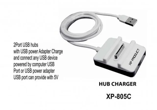 شارژر آیفون با هاب 2تایی xp-805c