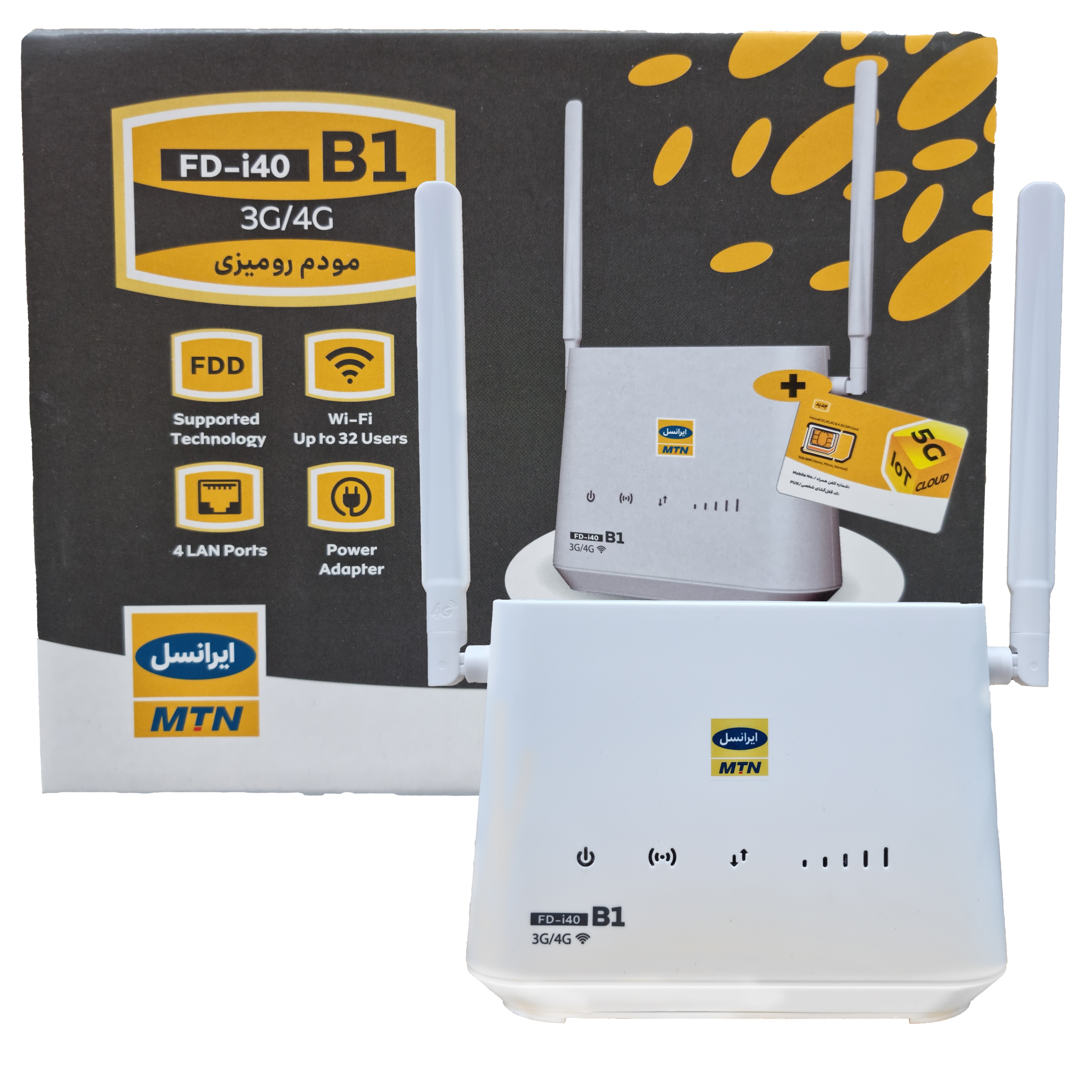 مودم « FD I40 B1» محصولی از شرکت «ایرانسل» است که در گروه مودمهای سیمکارتی قابلحمل و رومیزی قرار میگیرد. این مودم از نسلهای 3 و 4 اینترنت همراه پشتیبانی میکند که با آن میتوان سرعت خوبی را برای دانلود و آپلود تجربه کرد. سرعتی که شرکت تولیدکنندهی محصول برای انتقال اطلاعات توسط FD-I40 ارائه کرده، ۱۵۰ مگابیت بر ثانیه است. در واقع این مودم وایرلس با استفاده از معتبرترین چیپستهای موجود در جهان تهیه شده و دارای آنتن دهی و سرعت مناسب (150مگ دانلود و 50 مگ آپلود) میباشد. این مودم شرکت ایرانسل برای راهاندازی تنها به یک سیمکارت ایرانسل نیاز دارد. همچنین 32 کاربر بصورت همزمان می توانند بصورت بی سیم به آن متصل شوند. علاوه بر آن در محلهایی که پوشش نسل چهارم تلفن همراه وجود ندارد دستگاه به طور اتوماتیک به شبکه نسل سوم و یا دوم متصل میگردد . این مودم 4 پورت LAN برای اتصال کابل شبکه دارد. در قسمت پشتی این مودم یک کلید WPS برای اتصال سریع و امن وجود دارد