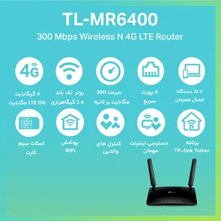 مودم روتر 4G LTE بی سیم N300 تی پی-لینک مدل TL-MR6400