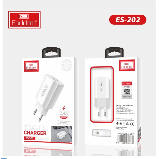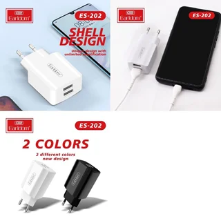 در مدل ES-202، از سری شارژرهای دیواری ، دو درگاه خروجی USB وجود دارد که امکان اتصال و شارژ انواع باتری تبلتها و گوشیهای موبایل را برای شما فراهم میکند. این محصول 62 گرم وزن دارد . ولتاژ ورودی در این شارژر 0.5 آمپر وهمچنین جریان خروجی در آن 2.4 آمپر شدت دارد. در زمان استفاده از شارژرهای دیواری، پاور بانکها و شارژرهای فندکی باید به شدت جریان خروجی شارژر و دستگاهی که قرار است با استفاده از آن شارژ شود دقت کنید. برای شارژ باتری در تبلتها باید یک شارژر با حداقل شدت جریان خروجی 2 آمپر داشته باشید. این در حالی است که باتری موجود در گوشیهای موبایل با استفاده از یک شارژر با حداقل شدت جریان خروجی 1 آمپر هم شارژ میشوند. این محصول با استفاده از فناوری شارژ سریع، طراحی و تولید شده است؛ در نتیجه شما با استفاده از آن میتوانید 50 درصد از باتری دستگاههایی را که قابلیت پشتیبانی از این تکنولوژی دارند، در عرض نیم ساعت شارژ کنید.